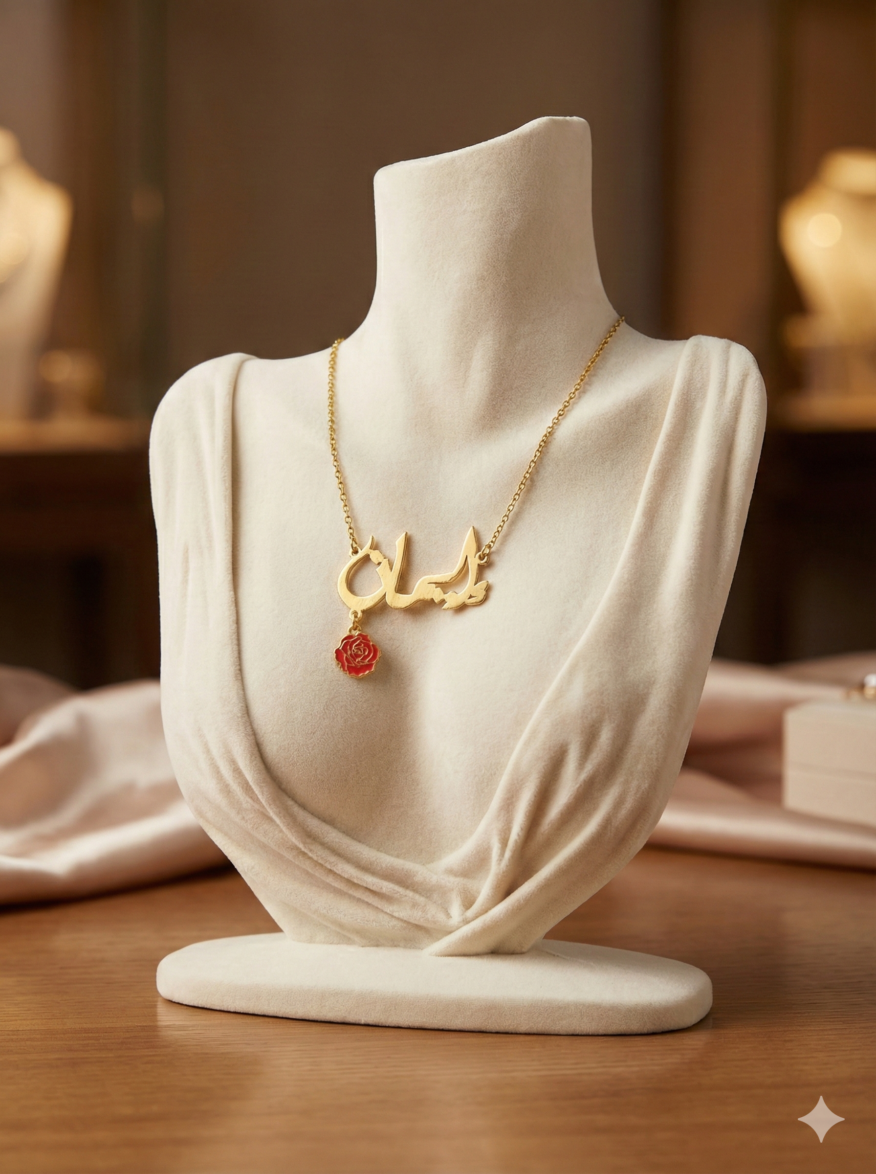 - التصميم: نصنع القلادة بأي إسم تريد.